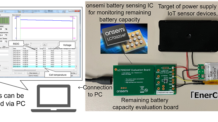 • NGK_Evaluation system with onsemi’s built-in battery sensing IC for monitoring remaining battery capacity