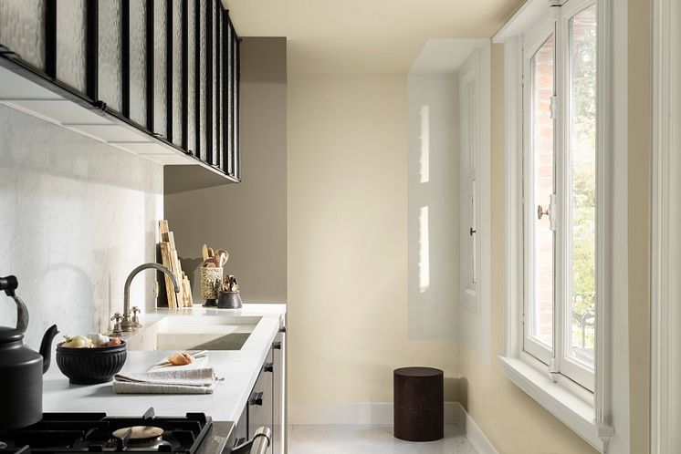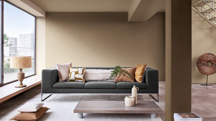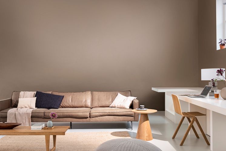 De Kleur van het Jaar 2021 is Brave Ground™Brave Ground™ is een volle evenwichtige kleur die ons opnieuw verbindt met de natuur en de eenvoudige zaken in het leven. Brave Ground™ is een veelzijdige tint die meebuigt qua toon afhankelijk van het moment van de dag, waar het is gebruikt en waarmee het is gecombineerd. Het is een warme naturelle neutrale kleur die andere kleuren laat stralen en zorgt voor een stevige basis. Het is een krachtige aardse kleur die zorgt voor veiligheid, groei en het tonen van mogelijkheden. Het creëert een omgeving die ons de moed geeft om verandering te omarmen. Het is een kleur die als basis gebruikt kan worden voor ontelbare kleurschema’s voor het interieur. Hierdoor kun je een omgeving creëren die bij elke persoonlijkheid past.