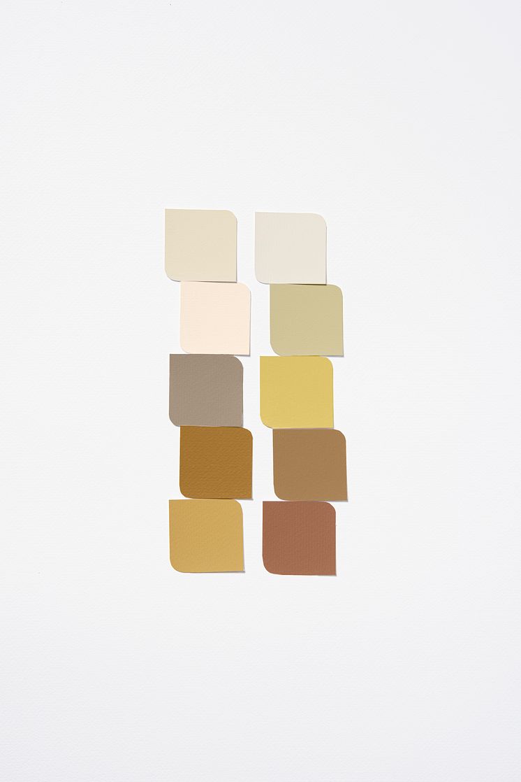 De gelen en okers uit dit palet, samen met wat zachte neutralen, kunnen helpen om een achtergrond te creëren die het oude en het nieuwe omarmen, energiek zonder overweldigend te zijn. De kleuren brengen positiviteit en balans in een ruimte. Dit palet is gekoppeld aan de trend waarbij vaardigheden en waarden uit het verleden een tijdloze weerklank hebben en door daarop te bouwen kunnen we een solide toekomst creëren.