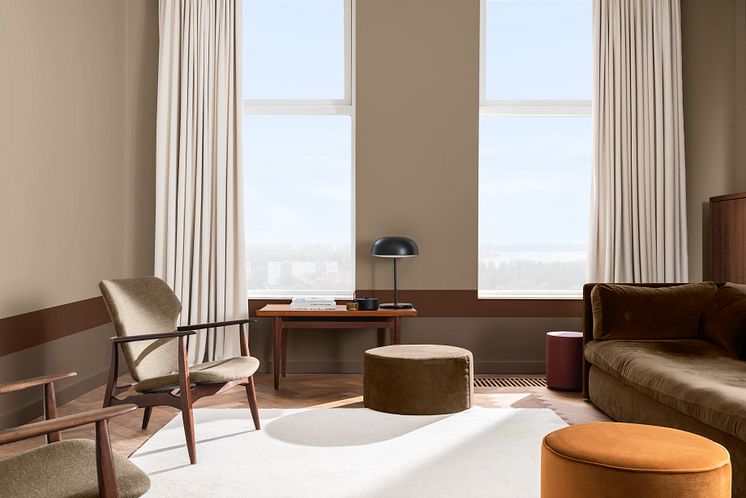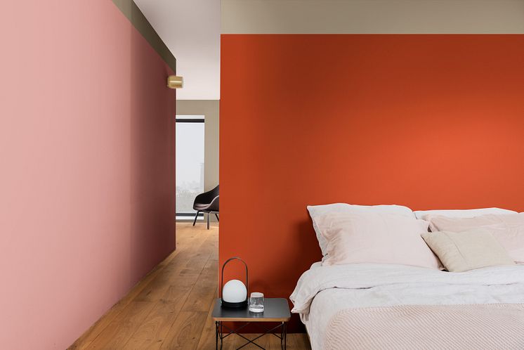 Kleur is het deel van het design dat het meest in het oog springt in hotels of recreatieruimtes. De kleuren van het Expressive-palet zijn perfect om gebouwen in deze branche een boost te geven. Deze kleuren voegen een persoonlijke noot toe aan openbare ruimtes en daarnaast een evenwichtige achtergrond in openbare omgevingen. Het palet is opvallend en bestaat uit gedempt roze en rood met warme neutrale kleuren en dé Kleur van het Jaar 2021. Het Expressive-palet brengt verve en vitaliteit in elke kamer. Het is een dynamisch en energiek palet dat ruimte biedt voor creativiteit. Het voegt een onderscheidend effect toe aan de ruimte, waardoor deze memorabel, aantrekkelijk en deelbaar wordt.