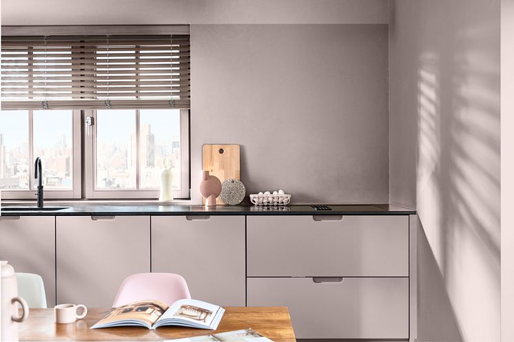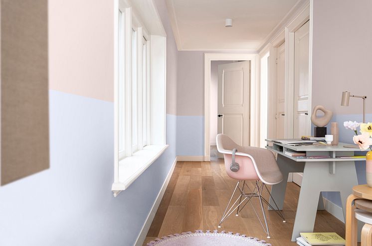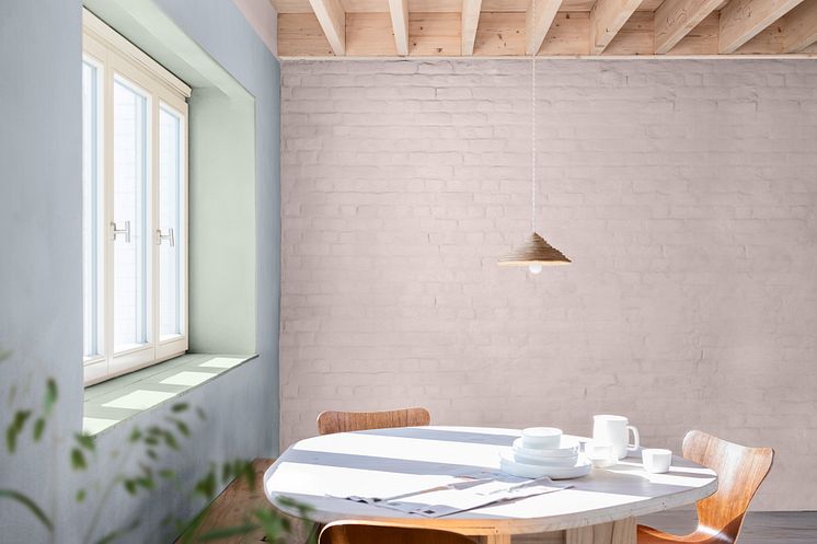 Geïnspireerd door de zachtheid van veren en de subtiliteit van avondwolken, brengt de Kleur van het Jaar Sweet Embrace™ een gevoel van stabiliteit, rust en vriendelijkheid in woon- en werkruimtes. Het is een delicate tint die van kleur verandert met het licht, maar die altijd warmte brengt in een ruimte. Onze Kleur van het Jaar is niet alleen een subtiele en verfijnde op zichzelf staande tint, maar vormt ook een solide basis voor een groot aantal andere tinten.