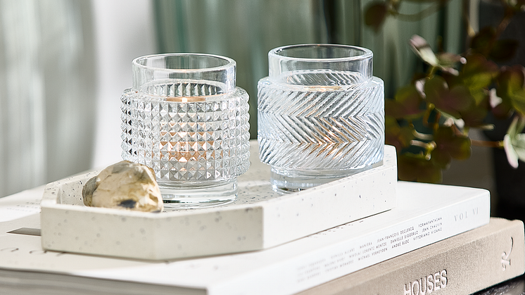 De theelichthouder ARN, met zijn transparante glas en elegante look, brengt extra karakter in je interieur. ARN is verkrijgbaar in verschillende ontwerpen en zorgt voor een prachtig en speels lichtspel. Plaats de theelichthouder bijvoorbeeld op het dienblad JESPER voor een sfeervol effect.