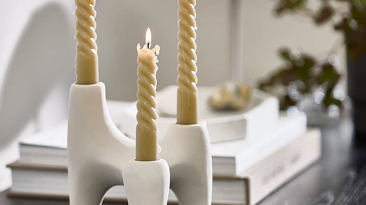 Een ander item dat op zichzelf een statement maakt, is de elegante kandelaar VIGNIR. Met zijn afgeronde vormen brengt VIGNIR speelsheid in de kamer. Plaats de kandelaar op een vensterbank of dressoir om een gezellige sfeer te creëren.