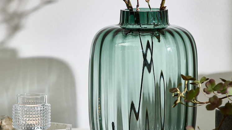 Geef je interieur een opfrisbeurt met de vaas KNUD. De zachte vormen en geribbelde textuur geven de vaas een uniek design, en afhankelijk van de plaatsing, toont KNUD subtiele groen- en grijstinten. KNUD trekt in elke ruimte de aandacht.