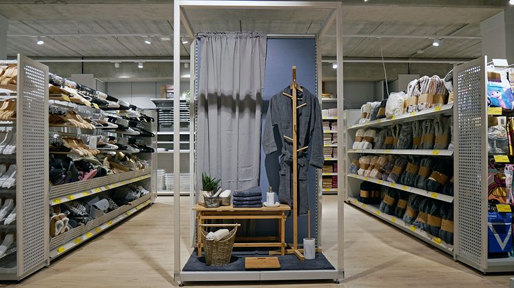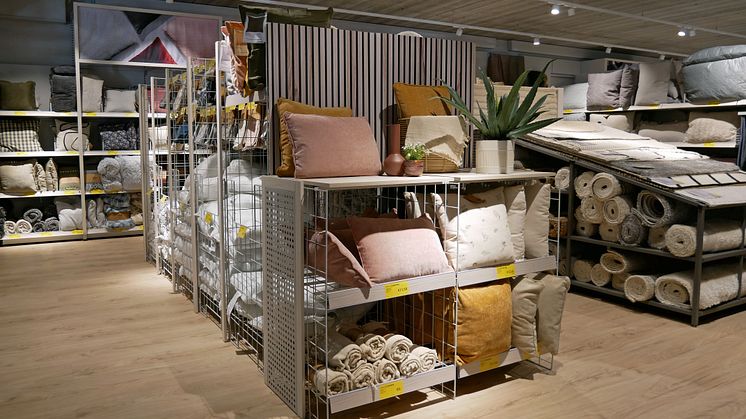 In het nieuwe winkelconcept van JYSK vallen vooral de houtlook vloer, sfeervolle verlichting en grote matrasstudio op. Ook is er plek gemaakt voor een zogenoemde T-Wall met drie voorbeeldkamers, ingericht volgens de laatste trends en collecties van JYSK.
