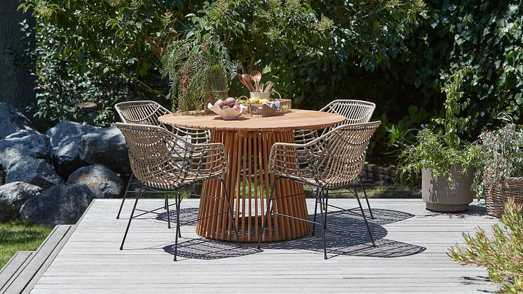 Met de start van het tuinseizoen introduceert JYSK ook een nieuwe outdoorcollectie. Het nieuwe aanbod bestaat uit diverse loungesets, tuinstoelen, parasols en paviljoens in moderne ontwerpen, levendige kleuren en van verschillende materialen. Zo is er een selectie nieuwe houten tuinmeubelen, die net als alle andere houten meubelen van JYSK zijn gemaakt van FSC®-gecertificeerd hout (FSC® N001715).