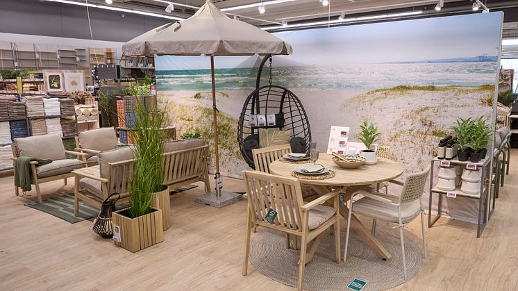 Harlingen is de eerste JYSK-winkel in Nederland met een vaste buitenpresentatie. Op zo’n 300 vierkante meter kunnen klanten het grootste deel van het tuinassortiment ontdekken, van loungesets en ligbedden tot parasols, tuintafels en tuinstoelen.