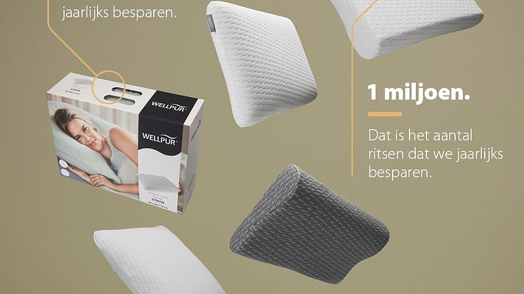 JYSK lanceert in maart een nieuwe verpakking en verbeterde productie voor alle ergonomische kussens uit het WELLPUR-assortiment. Daarmee bespaart JYSK elk jaar miljoenen plastic handvatten en metalen ritsen.