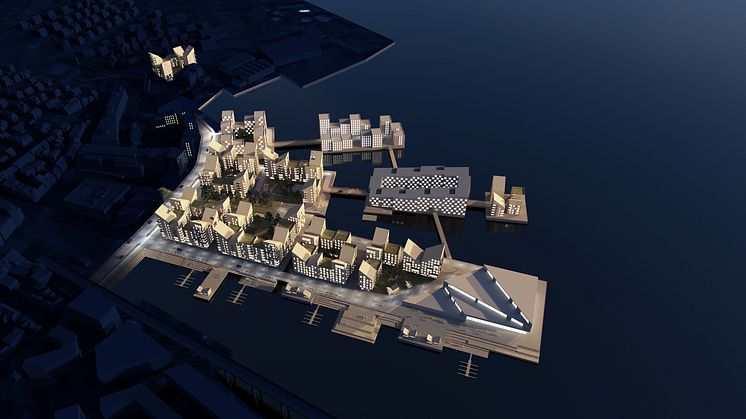 Helhetsplanen består av bygninger med skrånende takrygger, som trekker klare paralleller til de arktiske omgivelsene. I tillegg kommer åpne plasser mellom bygningene og offentlige etasjer på gateplan, som gir rom for liv, mens bygningene både i disponering, formgivning og materialvalg understøtter visjonen om en klimavennlig havnebydel.