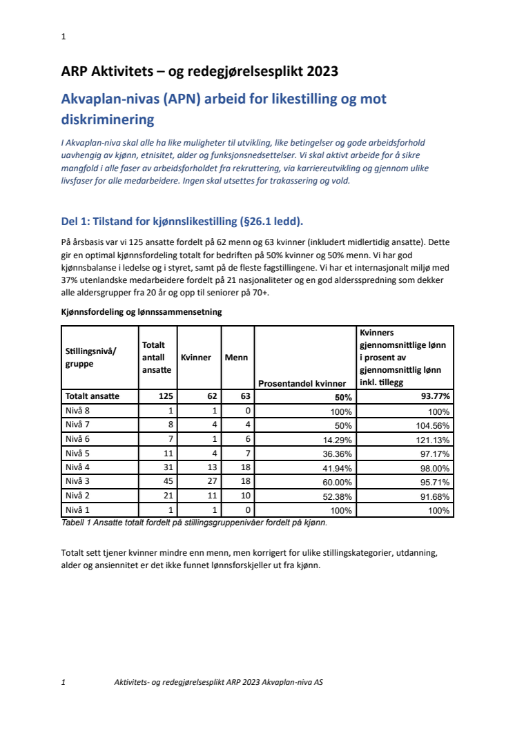 Akvaplan-nivas arbeid for likestilling og mot diskriminering (2021)