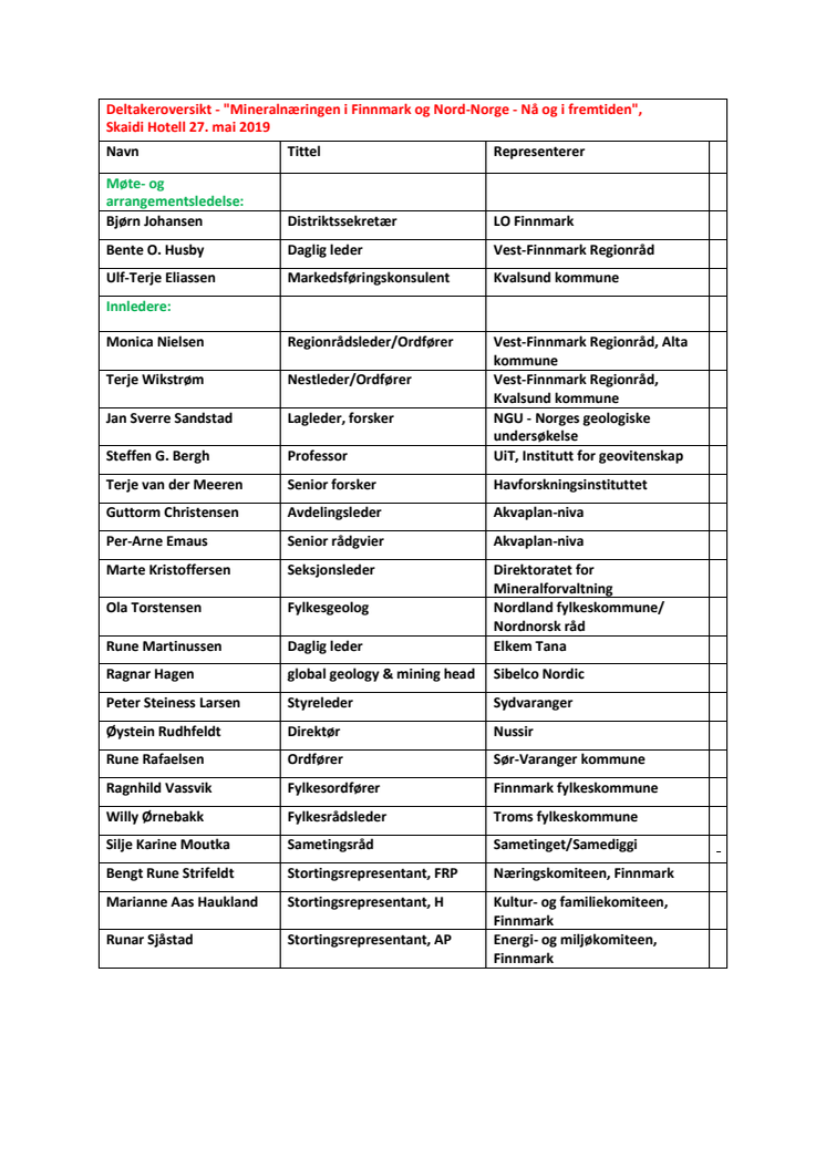 Deltakere Temadag Mineralnæring i Finnmark