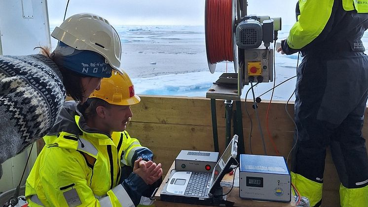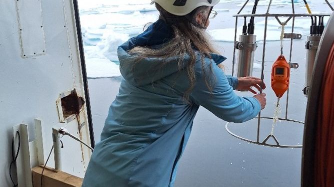 • Eva Leu using a Fast Repetition fluorometer to measure in situ profiles of algal physiology by Ronny Johansen.jpg