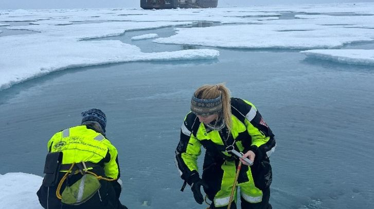 • Achim and Morven performing turbulence measurements through a hole in the sea ice.jpg