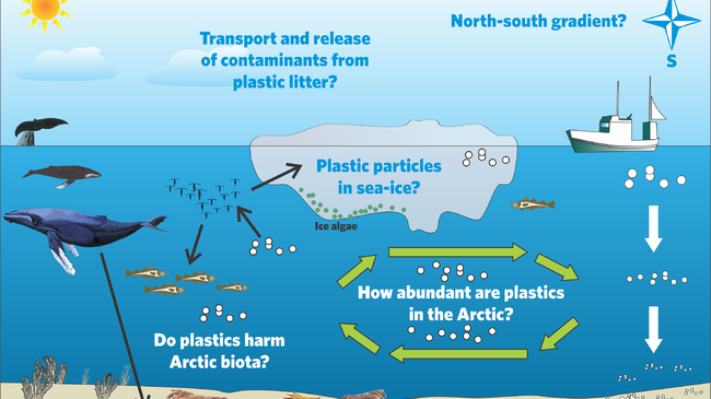 Havstrømmer frakter plastsøppel til Arktis fra hele verden. Lokale kilder bidrar også til plast i havet og plastsøppel finnes nå i alle arktiske marine habitater: langs kysten, på havoverflaten, i vannsøylen, i sjøis og på havbunnen. Forskere antar nå at en sjette store flytende «søppeløya» er i ferd med å dannes i Barentshavet mellom Novaja Semlja, Frans Josefs land og Svalbard.