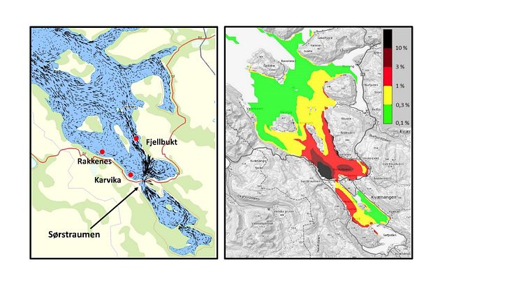 Akvaplan-niva har simulert strømforhold i nord (Troms/Finnmark) for å studere smittespredning mellom lokaliteter. På bakgrunn av dette har vi utviklet nettkartløsningen "havstraum.no" som viser strømkatalog og spredningssimulering for regionen. Dette verktøyet har nå vært tatt i bruk i forbindelse med et ILA-utbrudd i Kvænangen for å vurdere fare for smittespredning og kontrollområde.
