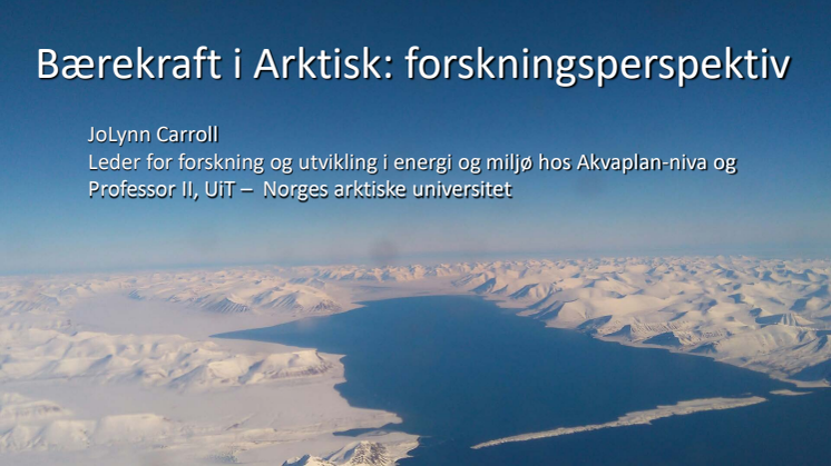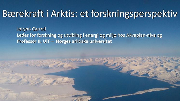 For å oppnå FN's bærekraftsmål innen 2030 er det mest aktuelt å prioritere anvendt forskning som har en tidshorisont på mellom 1 til 10 år, sier Carroll. Fra et arktisk ståsted påpekte Carroll videre betydningen av nordnorsk diversitet som kunnskapsnav i en bærekraftig verdiskaping i Nordområdene. Med noen eksempler fra Akvaplan-niva's brede prosjektportefølje, synliggjorde Carroll hvordan forskning kan utgjøre en viktig kilde til å løse bærekraftsutfordringer i Nordområdene/Arktis. Hun fastholdt at samarbeid mellom forskningsmiljøene og næringslivet er avgjørende for å løse fremtidige utfordringer. Akvaplan-niva anvender praktisk erfaring fra arbeide med rådgivning og forskning i dialog med næringsaktører og bedriften bidrar gjennom dette til utviklingen av anvendbare løsninger for næringslivet.