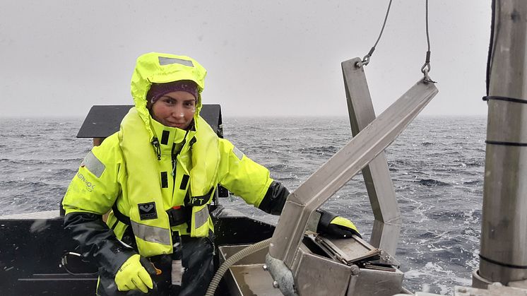 Collection of sediment samples close to a fish farm. Photo: Carl Ballantine / Akvaplan-niva