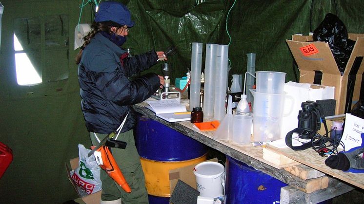 Labben i Rijpfjorden. Prøvefiltrering med signalpistol (Foto: Jozef Wiktor).