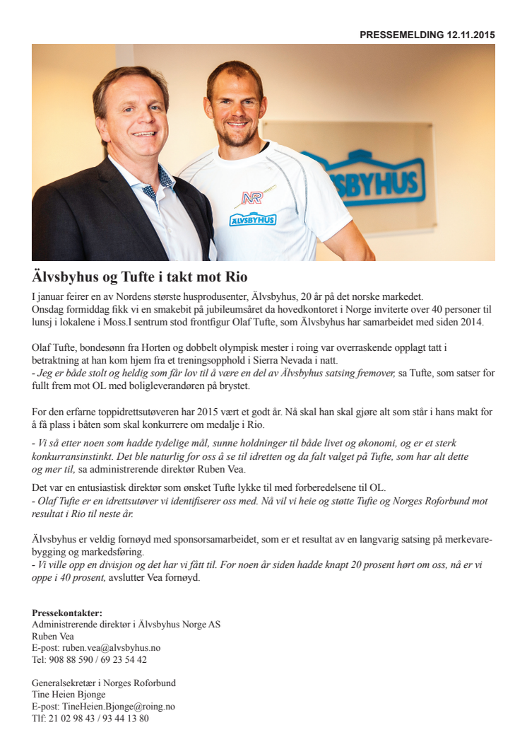 I januar feirer en av Nordens største husprodusenter, Älvsbyhus, 20 år på det norske markedet. Onsdag formiddag fikk vi en smakebit på jubileumsåret da hovedkontoret i Norge inviterte over 40 personer til lunsj i lokalene i Moss. I sentrum stod frontfigur Olaf Tufte, som Älvsbyhus har samarbeidet med siden 2014.