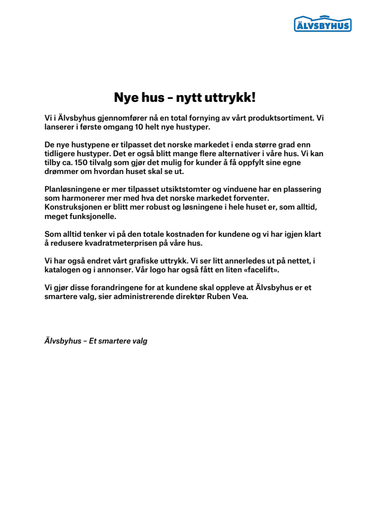 Vi i Älvsbyhus gjennomfører nå en total fornying av vårt produktsortiment. Vi lanserer i første omgang 10 helt nye hustyper.