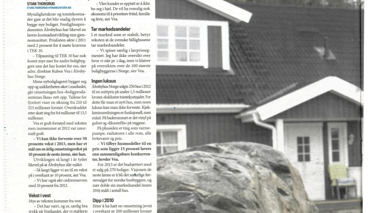 Myndighetskrav og tomtekostnader gjør at det blir stadig dyrere å bygge boliger. Ferdighusprodusenten Älvsbyhus har likevel en lavere kostnadsutvikling enn gjennomsnittet. I tillegg viser fjorårets omsetning en økning fra 210 til 323 millioner kroner. Det er administrerende direktør Ruben Vea godt fornøyd med. Se full artikkel i pdf format.