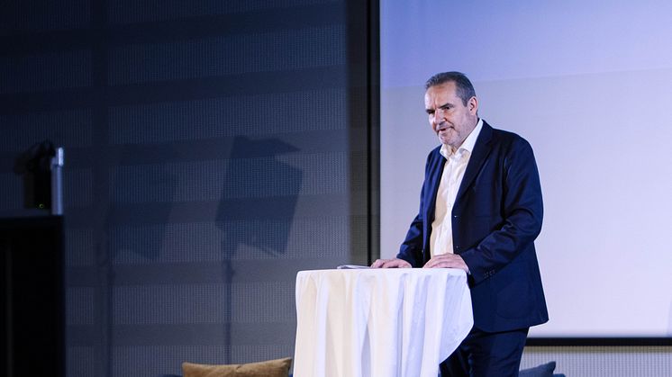 Partner og bransjeansvarlig i PwC, Stian Gårdsvoll, holder en kort innledning om trendene i bransjene, og behovet, for vi slipper debatten og debattantene ene løs.