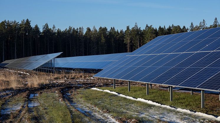 Aneo har startet kraftproduksjon i Henja solpark (15MWp), Sveriges første storskala solpark på skogsmark.