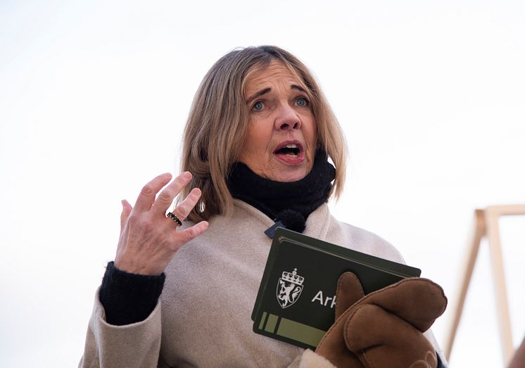 Inga Bolstad, riksarkivar. 4. desember 2024 ble grunnsteinen i regionalt historiesenter på Anno Domkirkeodden lagt ned.