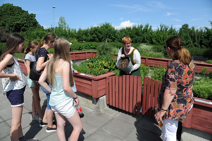Hildur Hauksdottir lærte bort mye og mangt om alrunen og andre planter som fantes i middelalderen, under sine omvisninge i ANno Domkirkeoddens urtehage. Kulturminister Trine Skei Grande var en av mange som besøkte Hamar middelalderfestival på Domkirkeodden 8.-10. juni 2018.
