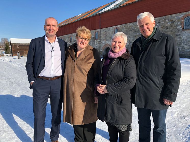 Kulturministeren på besøk ved ANno - Museene i Hedmark: Fra venstre adm.dir. Sven inge Sunde, kulturminister Trine Skei Grande, leder for bevaringstjenesten, Vigdis Vingelsgaard og styreleder Axel Krogvig.