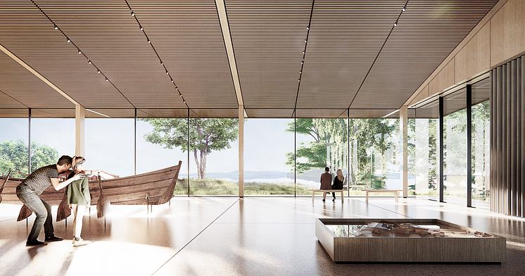 Faksimiler fra vinnerutkastet til nytt museumsbygg på Domkirkeodden, Hamar. "Shelter" tegnet av arkitektene i Atelier Lorentzen Langkilde fra København.