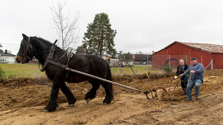 For å gjøre en historisk vri på «første spadetak», brukte styreleder Knut Storberget hest og en gammel plog for å markere byggestarten. Han og administrerende direktør Sven Inge Sunde roser museumslederne i Anno, tidligere styreledere og administrerende direktør for langsiktig tankegang og arbeidet med å skape et av Norges best konsoliderte museer.
