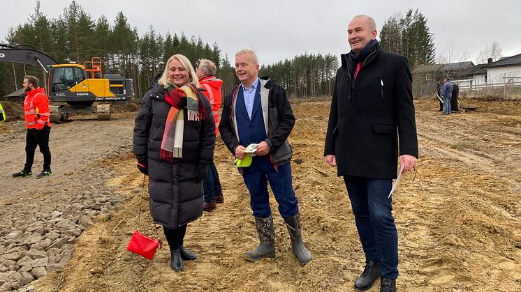 GLEDENS DAG: Styreleder Knut Storberget (t.v.) og adm. dir. Sven Inge Sunde hadde god grunn til å smile fra øre til øre, da spaden endelig ble satt i jorda i et byggeprosjekt det har vært jobbet med siden 2006.