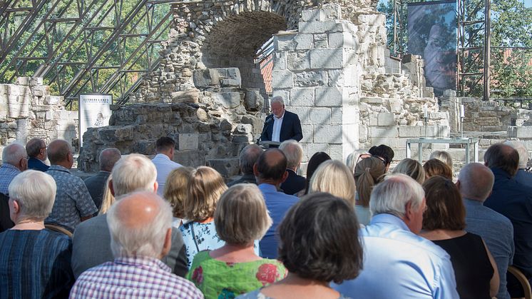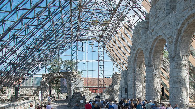Nydelig middelaldersang fremhevet Hamardomens fantastiske akustikk, og satte stemningen da Riksantikvaren og Anno Domkirkeodden inviterte til jubileumsfeiring. Arkitektur i samspill og kontrast, mellom en 850 år gammel domkirkeruin fra middelalderen og et moderne vernebygg i stål og glass, gikk igjen i mange taler under det omfattende jubileumsprogrammet for vernebygget.