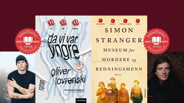 – Det føles stort å bli tatt så godt imot av bokhandlerne, og som debutant er dette over all forventning. Jeg er takknemlig for støtten og krysser fingrene, sier Oliver Lovrenski, som også er tidenes yngste nominerte til Bokhandlerprisen med Da vi var yngre. Simon Stranger fikk prisen i 2018 for romanen Leksikon om lys og mørke, og er i år nominert for tredje gang: – Å bli stemt frem igjen blant de viktigste og mest dedikerte leserne i landet, nemlig bokhandlerne, gjør meg dypt rørt og takknemlig, og gir meg lysten til å brette opp ermene igjen og skrive videre. Takk!, sier Stranger.
