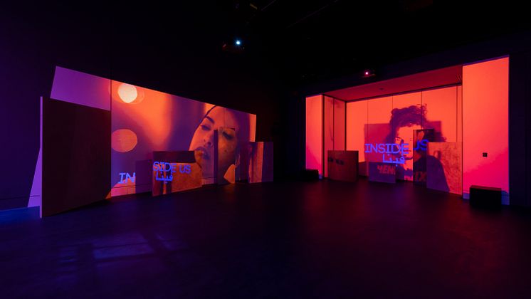 Installasjonsfoto, Basel Abbas og Ruanne Abou-Rahme, May amnesia never kiss us on the mouth, 23.04. – 26.06.2022. The Museum of Modern Art, New York. © 2022 The Museum of Modern Art, New York. Foto: Jonathan Muzikar.