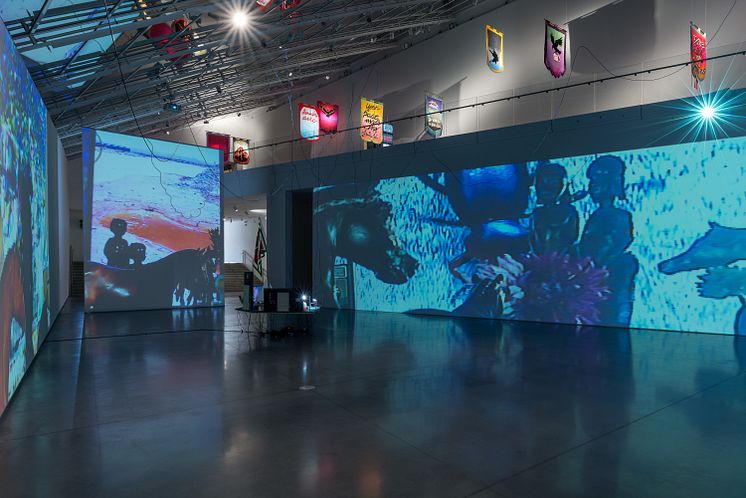 Cauleen Smith, …we are running…, 2024. Installation view, The Deep West Assembly, Cauleen Smith. Astrup Fearnley Museet, 2024. Photo: Christian Øen.
