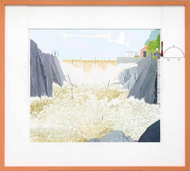Leonard Rickhard, Utsatt figur studerer en foss i flom, 2017-18. Christian Bjellands samling. Foto: Thomas Widerberg