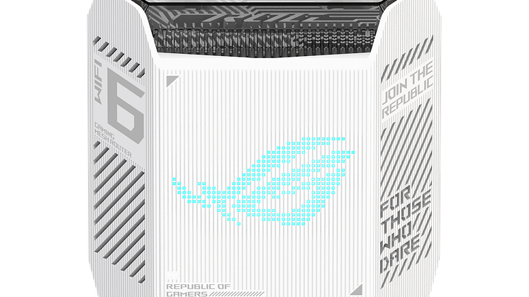 The ROG Rapture GT6 is built with premium form and function in mind. It adopts a sleek design by moving its many antennas from the exterior to the interior. Its futuristic style is highlighted by an Aura RGB logo, slashed vents and the ROG tagline For Those Who Dareetched into one side. And on the top and bottom, ventilation grills are aligned with the heatsinks within, for ideal convective effects and heat dissipation. A Moonlight White edition is also available for those who prefer a brighter aesthetic.