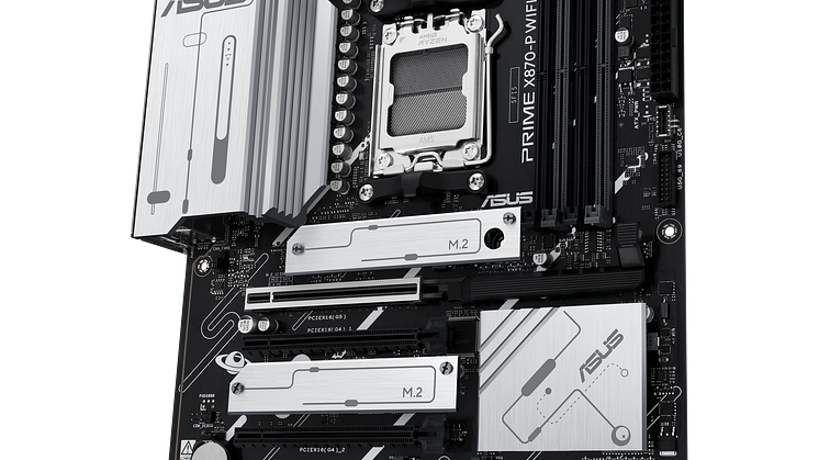 Our new X870E / X870 motherboards unlock the powerful AI capabilities of the new AMD Zen 5-based Ryzen™ 9000 Series processors. The comprehensive lineup includes models for every skill level, every project, and every budget: alongside the ROG Crosshair X870E Hero are the ROG Strix X870E-E Gaming WiFi, ROG Strix X870-F Gaming WiFi, the white ROG Strix X870-A Gaming WiFi, and the mini-ITX ROG Strix X870-I Gaming WiFi. Rounding off the lineup are the TUF Gaming X870-Plus WiFi, the Prime X870-P WiFi, and the ProArt X870E-Creator WiFi.
