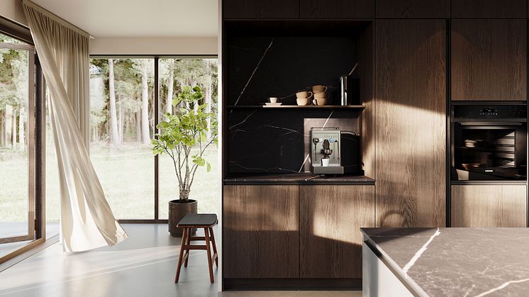 Vil du ha mer kontrast? Kombiner treverk med sorte detaljer, stål eller keramiske benkeplater for en balansert og moderne stil.