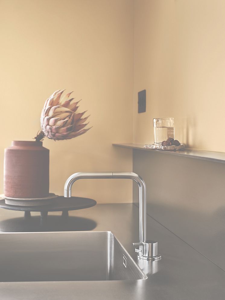 For en enkel og tøff stil er det fint med 6 mm benkeplater i stål, sprutbeskyttelse og hylle.