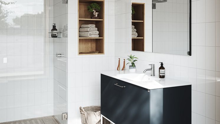 I tillegg har våre baderomsprodukter nærmet seg vårt kjøkkensortiment i design og stil. Nå lar vi kjøkken og baderom harmonere med samme farge- og treslag, noe som gir herlige muligheter til å matche kjøkkenet med baderommet.