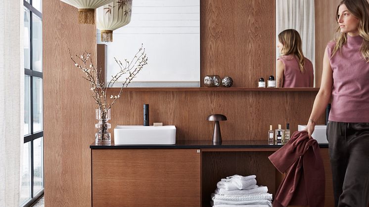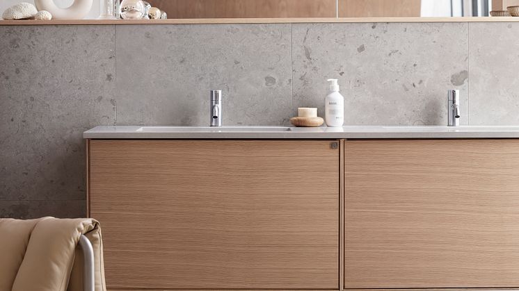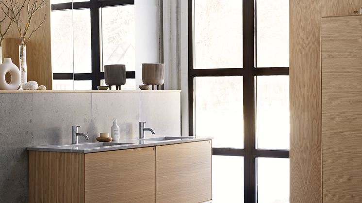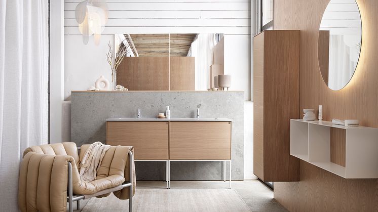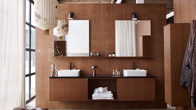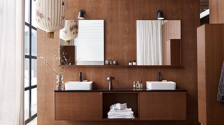Vår fantastiske nyhet Vanity er et elegant baderomsmøbel med en vakker fas mellom skuffefronten og servantskapets side. Denne serien får fram all vår erfaring når det gjelder bearbeiding av tre - målet har vært å sette sammen detaljene på en moderne og elegant måte samtidig som vi utnytter vår kompetanse på dette flotte materialet.