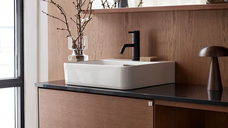 Alle servantskap i Vanityserien kan fås med alle heldekkende servanter i vårt sortiment, alternativt benkeplate med ovenpåliggende vask fra serien Val.