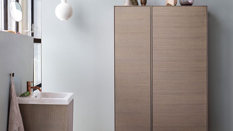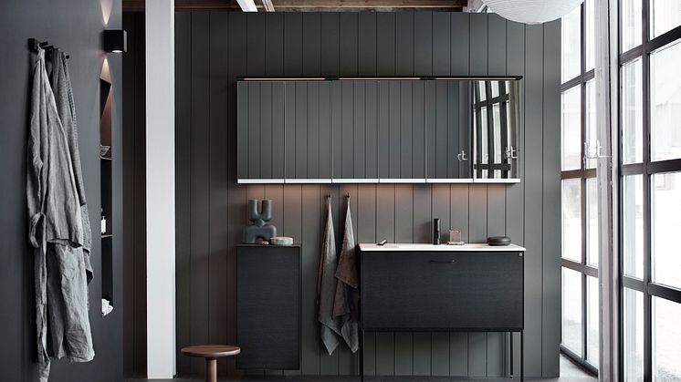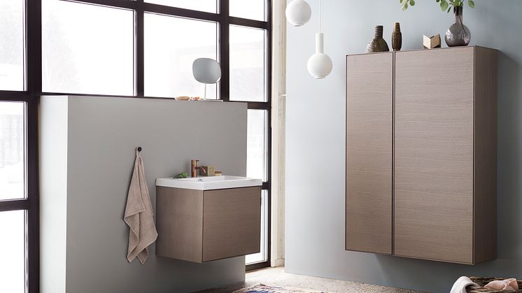 Vanity uttrykker en kjærlighet for tre som materiale og kommer som servantskap, overskap og høyskap – dette gir gode muligheter for en helhetlig innredning på baderommet. Samtlige skap i serien finnes i finert eik, og i fem utførelser som under: