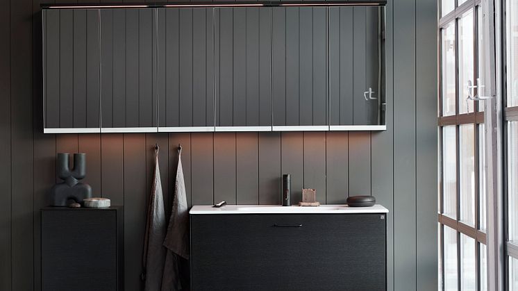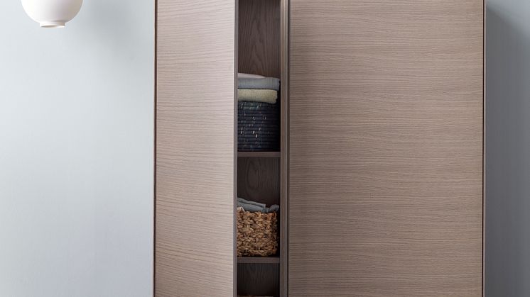Vanity høyskap og overskap kommer i breddene 398 mm og 598 mm.