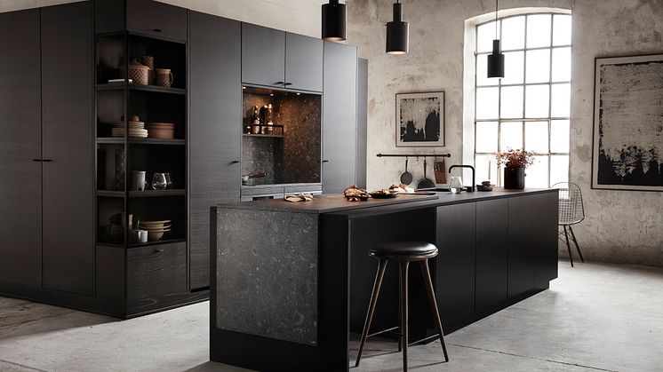 S45ER DRØMMEKJØKKENETS NYEKONSEPTFOR KJØKKENØY DER LANGSIDENE OG KORTSIDENE MØTESIET GJÆRET HJØRNE. PÅ DENNE MÅTEN KAN MAN GJØREEN MINIMALISTISKKJØKKENØY MED EN MONOLITTISKFØLELSE. DETTE GIR ET UNIKT UTSEENDEIKKE MANGE HAR PÅ MARKEDET.