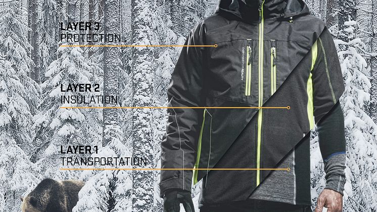 Ved hardt arbeid under kalde forhold er det viktig å kle seg riktig for å holde seg tørr og riktig temperert. Den største risikoen av å jobbe utendørs i kaldt vær er å kle seg feil og fryse og svette vekselvis. 3-lags-prinsippet gir deg muligheten til å regulere kroppstemperaturen ved å ta av eller på deg plagg når været eller intensiteten krever det. Den klassiske prinsippet om lag på lag, er under kaldere årstider stadig aktuelt, men hvilke plagg du bør kle deg for å holde riktig kroppstemperatur?