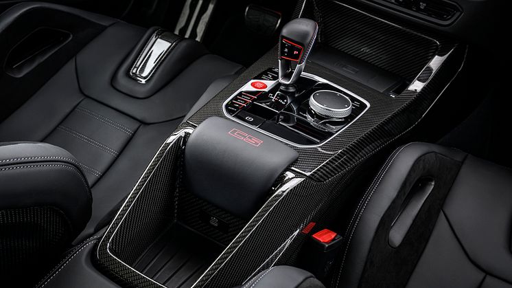Innsiden kombinerer eksklusivitet med funksjonelt sportslig preg. Både fører og passasjer sitter i oppvarmede M Carbon-bøtteseter i Merino-skinn. Dashbord og midtkonsoll er kledd i M Carbon Fibre. Andre detaljer inkluderer M-ratt i Alcantara, rød “CS”-logo i midtkonsollen, M-belter og dørterskler med “M2 CS”-logo med røde konturer.